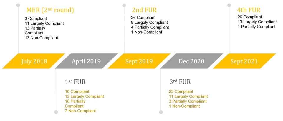 In 2016, Mauritius further underwent a 2nd round of Mutual Evaluation of its AML/CFT framework under the 2013 Methodology. On 21 September 2018, the ESAAMLG published the MER on its assessment of Mauritius’s level of technical compliance with the FATF Recommendations and the level of effectiveness of its AML/CFT system.